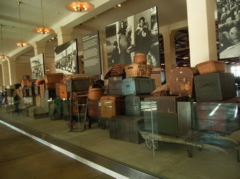 大廳中央的一堆行李,顯示早期有多少人想到美國來啊!