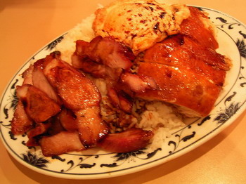 找了家燒臘店進去,點了三寶飯,不過價錢還是一樣的美國(貴)