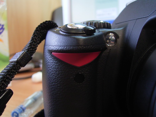 Nikon的數位單眼都有這個小小的紅內褲XD(要說絲巾也可以)